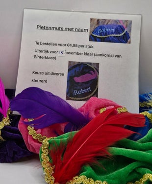 In diverse kleuren beschikbaar met de tekst 'HOERA'. Eventueel te bestellen met gewenste tekst in gewenste kleuren.